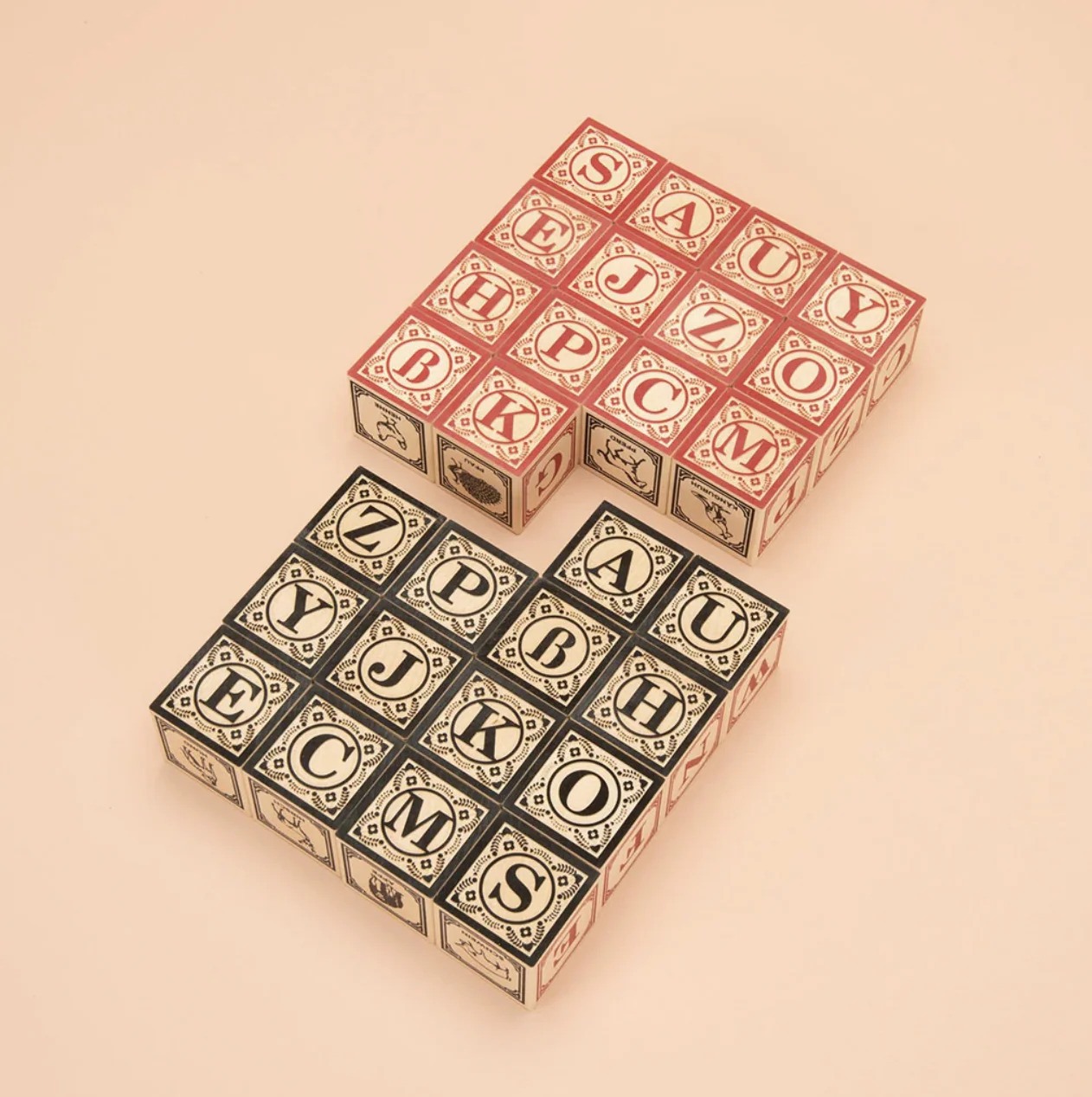 Notice the bold and decisive color palette: it's personal. Uncle Goose's designer created it from her family's embroidered heirlooms. The oak bough & acorn filigree is unique to the German block set.