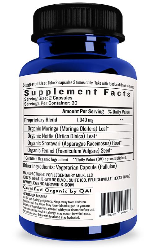 INGREDIENTS: Organic moringa (leaf), organic nettle (leaf), organic fennel (seed), organic shatavari (root), vegetable capsule.