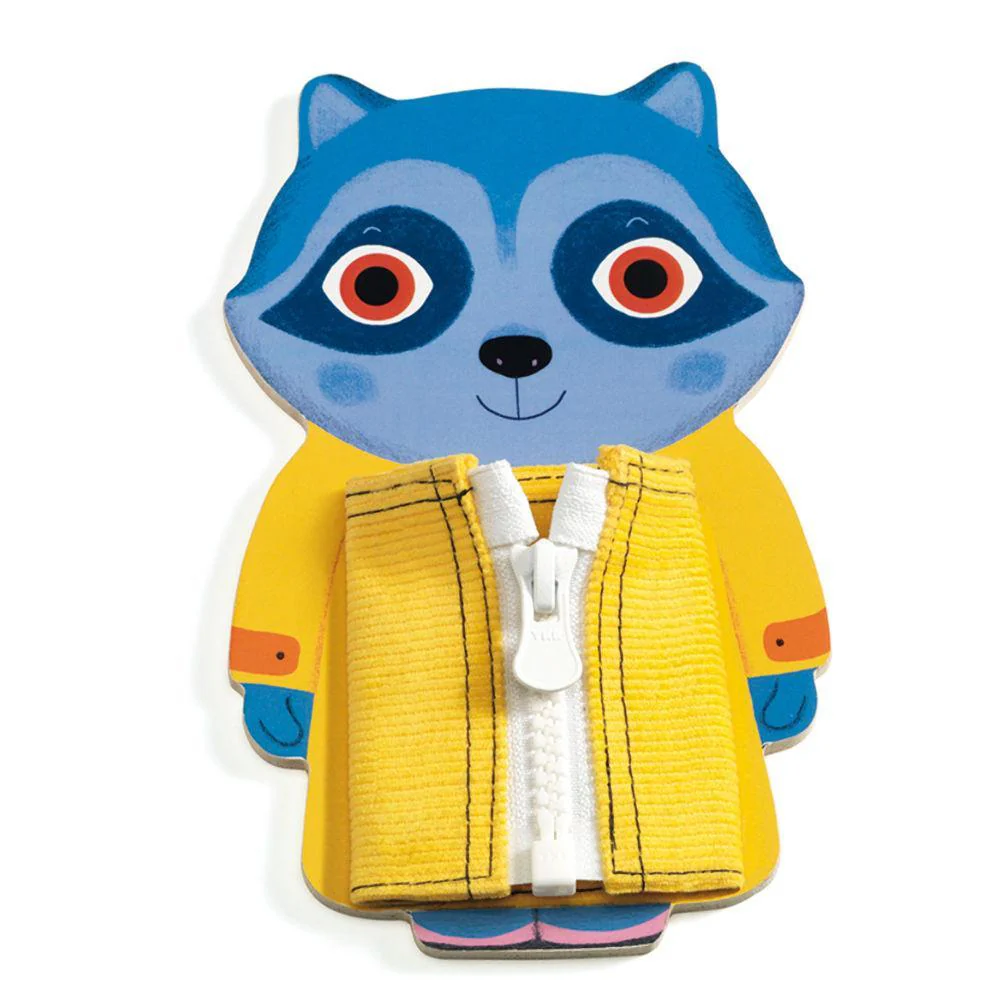 Help these little friends to put on their coats! French toy maker Djeco makes this classic learning toy more colorful and fun to encourage toddlers to practice fine motor skills. Your toddler will have fun opening the coats using the different accessories: a button, a zip, and snaps!